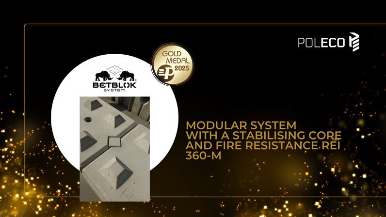 BETBLOK® SYSTEM is an innovative system of modular concrete blocks with stabilising cores that eliminate the need for fire-resistant foams. The walls achieved record fire resistance REI 360-M, where the M parameter denotes resistance to mechanical impacts. The system ensures the highest level of safety, is eco-friendly and allows for the reuse of components.