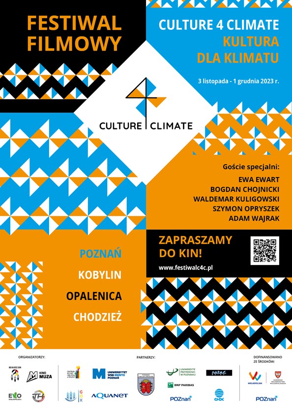 Serdecznie zapraszamy Państwa do zainteresowania się nowym wydarzeniem kulturalnym w Wielkopolsce pn. FESTIWAL CULTURE4CLIMATE :: KULTURA DLA KLIMATU, który odbędzie się w dniach 3 listopada – 1 grudnia 2023 r. w czterech miastach: Poznaniu, Kobylinie, Opalenicy i Chodzieży.