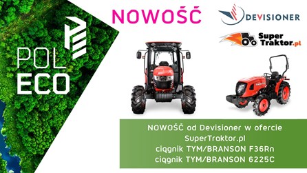 Devisioner - kierujący swoją ofertę do użytkowników poprzez serwis SuperTraktor.pl - zaprezentuje na targach POLECO 2022 dwa nowe ciągniki TYM/Branson.