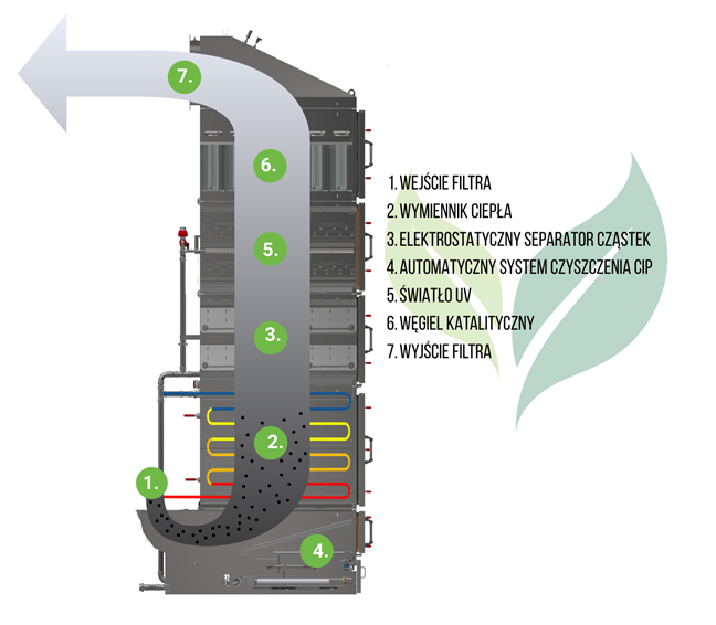 Elektrofiltr AAIRMAXX to zaawansowany system filtracji powietrza wylotowego z komór wędzarniczych. Charakteryzuje się wysoką wydajnością, znikomymi kosztami eksploatacyjnymi oraz niskim zużyciem energii.