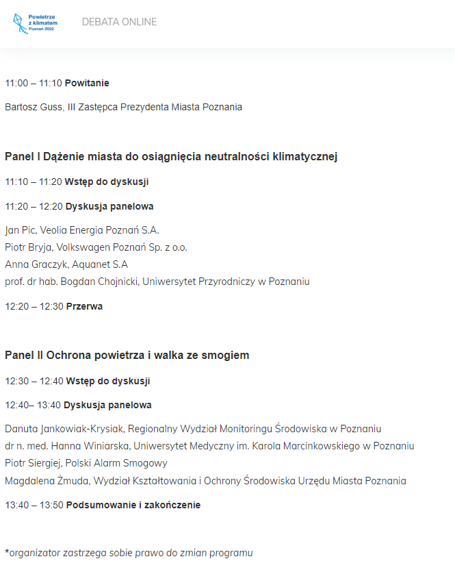 Można już rejestrować się na ogólnopolską debatę "Powietrze z klimatem". Wydarzenie organizuje Wydział Kształtowania i Ochrony Środowiska Urzędu Miasta Poznania. Odbędzie się ono w formule online za pośrednictwem platformy PPV w dniu 7 grudnia 2022 r.