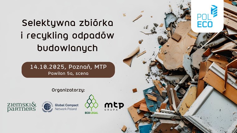 Już 14 października, podczas targów POLECO, odbędzie się konferencja "Selektywna zbiórka i recykling odpadów budowlanych", której organizatorami są: ECO LEGAL Kancelaria Adwokatów i Radców Prawnych, ZIEMSKI&PARTNERS Kancelaria Prawna i Grupa MTP.
