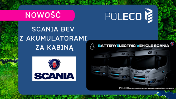 Na targach POLECO Scania Polska zamierza zaprezentować po raz pierwszy SCANIA BEV z akumulatorami za kabiną.